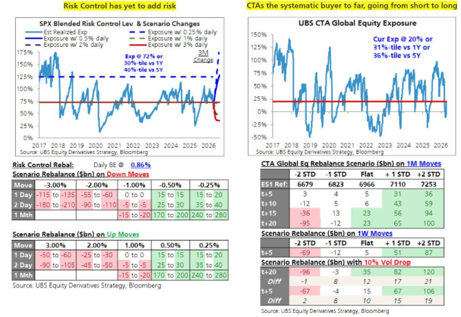 在系统性策略阵营中,商品交易顾问(CTA)是此轮反弹中最主要的买入力量。据瑞银报告,CTA已从上周的净空头转为净多头,但当前敞口仅处于历史第31百分位,意味着一旦市场继续上行,CTA仍有相当大的加仓空间。